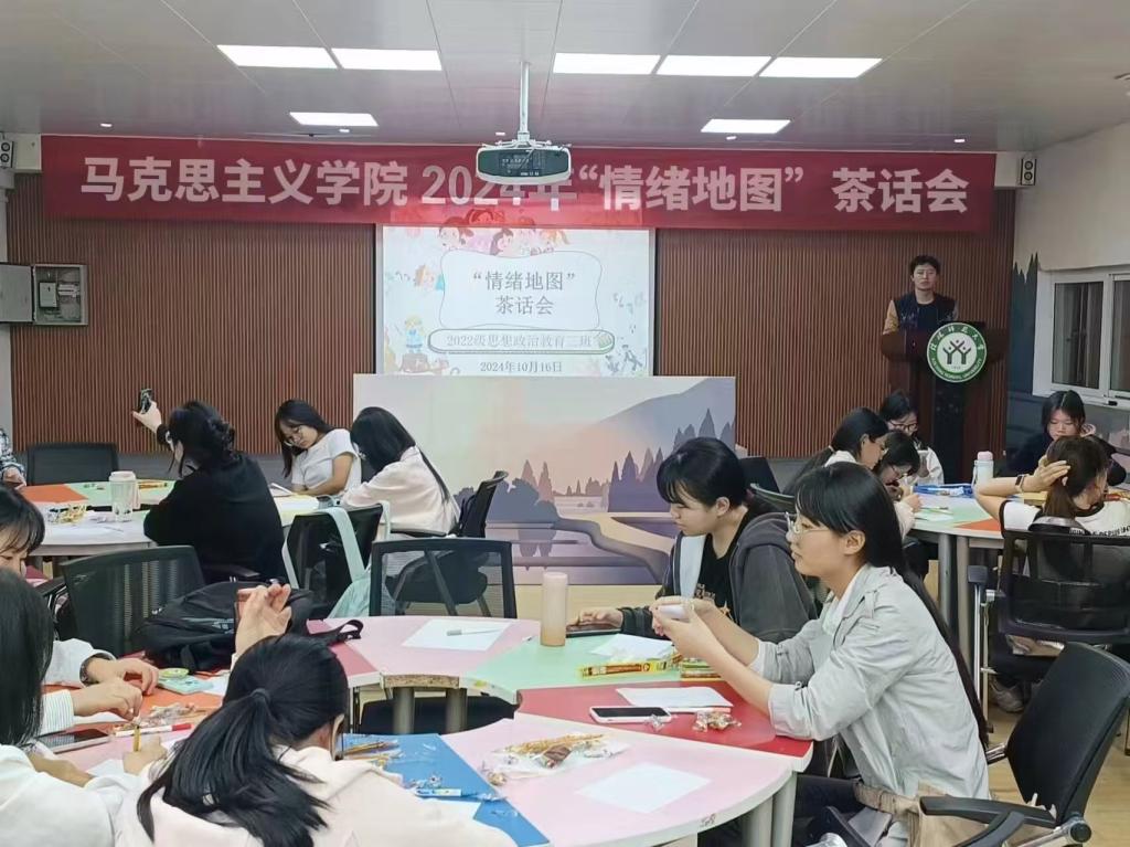 为提高心理育人质量,引导大学生调理自我情绪,10月16日晚,sjb世俱杯网站2022级思想政治教育三班于逸夫楼团辅室举办了“情绪地图”茶话会,世俱杯官网2022级思想政治教育三班全体成员共同参与。班长余浩洋担任主持人。