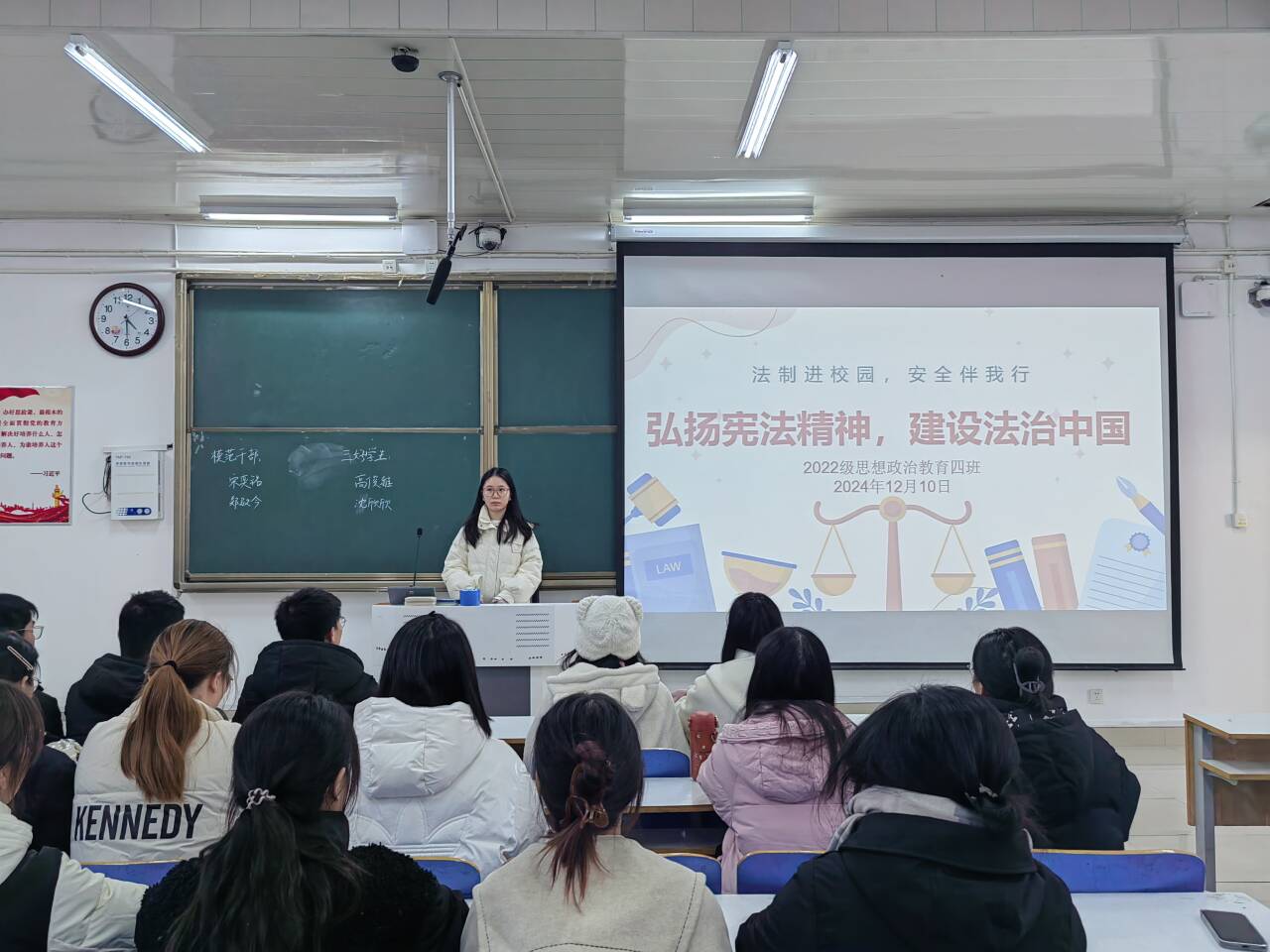 为了加深学生对宪法的认识,引导学生树立正确的法治观念,12月10日上午,sjb世俱杯网站2022级思想政治教育四班在社科楼514教室组织召开“弘扬宪法精神,建设法治中国”主题班会。世俱杯官网2022级思想政治教育四班全体成员参与本次班会。本次班会由班长牛志杰主持。