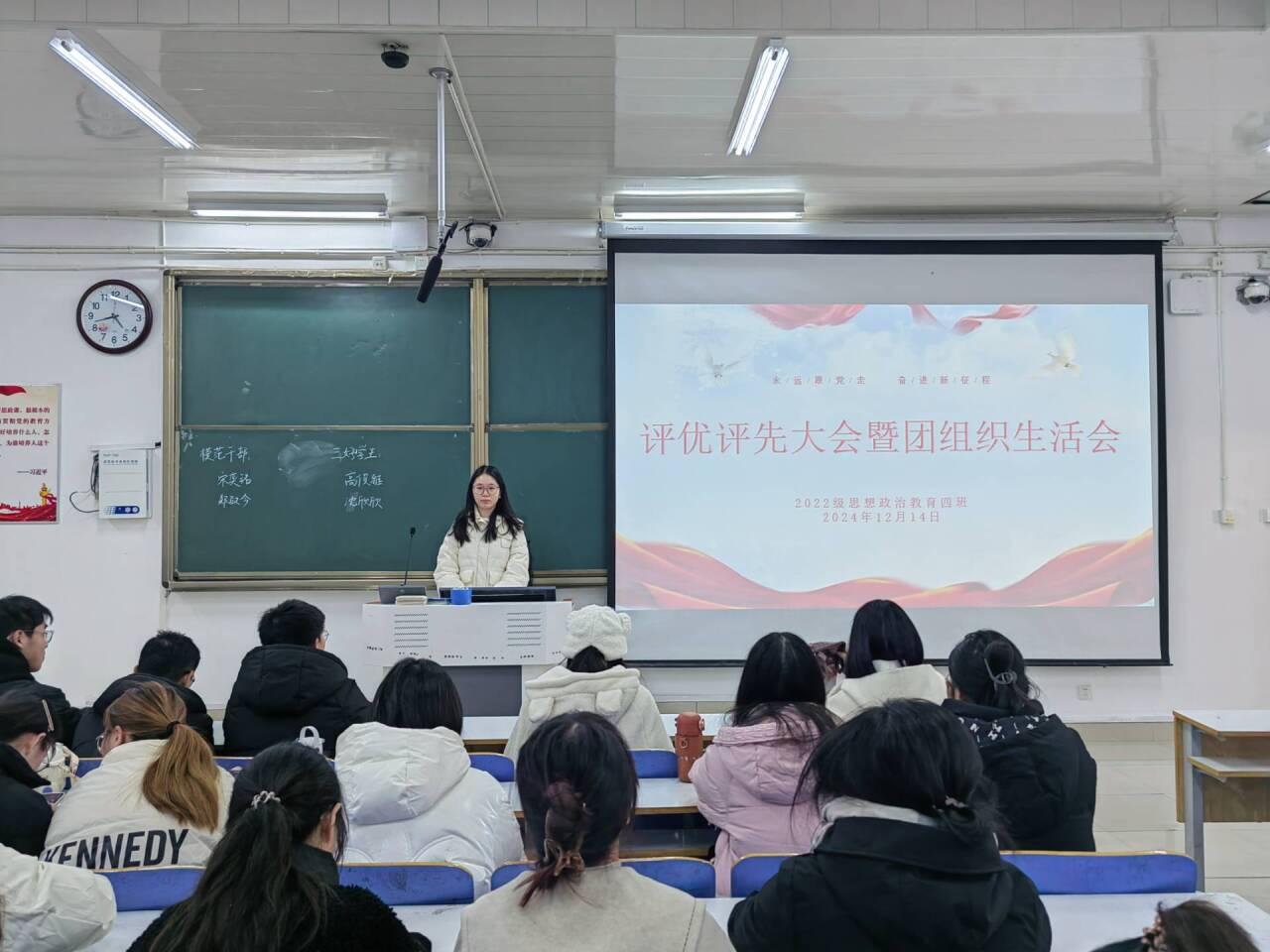 12月14日下午,sjb世俱杯网站2022级思想政治教育四班在社科楼514教室组织召开“评优评先大会暨团组织生活会”。世俱杯官网2022级思想政治教育四班全体成员参与本次班会。本次班会由班长牛志杰主持。