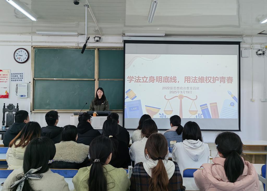 为增强学生的法治观念,培养学生的守法意识,3月19日上午,sjb世俱杯网站2022级思想政治教育四班在社科楼514教室组织召开“学法立身明底线,用法维权护青春”主题班会。世俱杯官网2022级思想政治教育四班全体成员参与本次班会。本次班会由班长牛志杰主持。