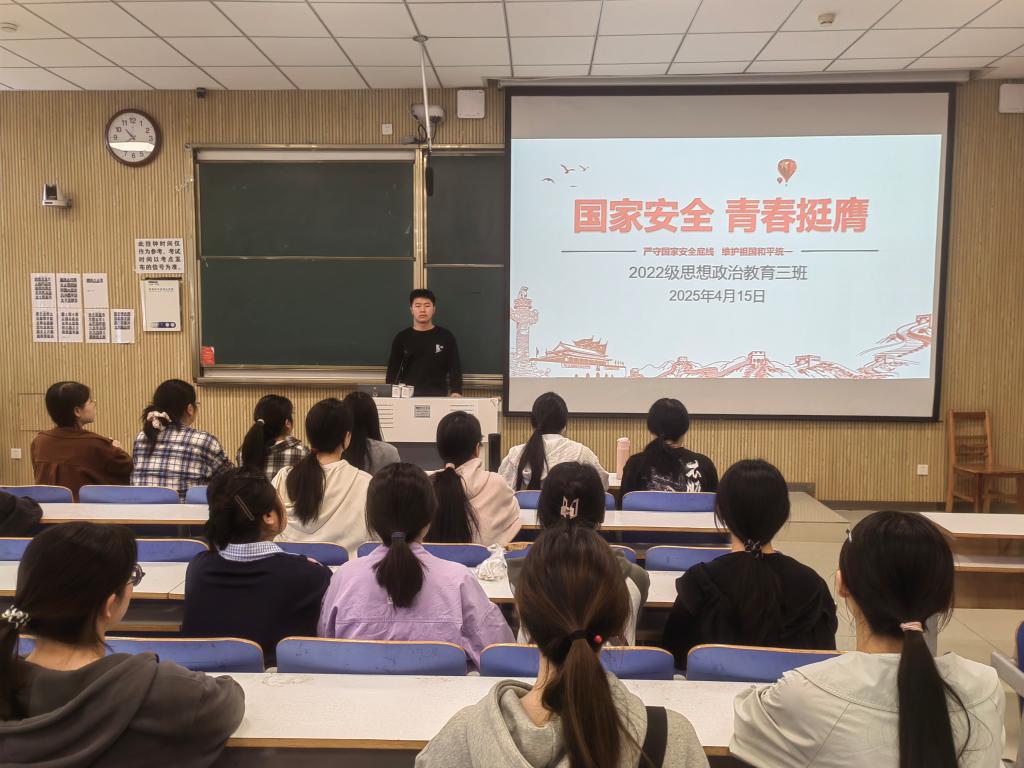 4月15日上午,sjb世俱杯网站2022级思想政治教育三班在社科楼515教室召开“国家安全,青春挺膺”主题团课。世俱杯官网2022级思想政治教育三班全体同学共同参与此次团课。团课由团支书余浩洋主持。