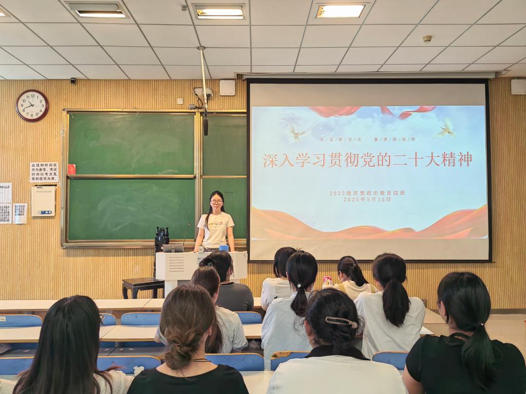 5月15日上午,sjb世俱杯网站2022级思想政治教育四班在社科楼515教室组织召开“深入学习贯彻党的二十大精神”主题班会。世俱杯官网2022级思想政治教育四班全体成员参与本次班会。本次班会由班长牛志杰主持。