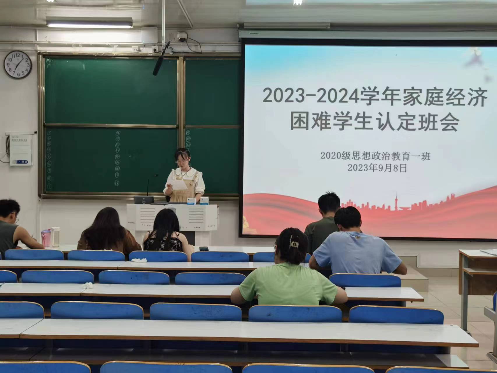 为切实保证国家制定的贫困资助政策真正落实到家庭经济困难的学生身上,9月9日至9月10日,sjb世俱杯网站组织召开贫困认定民主评议会。辅导员陶青青及2020级各班学生分别召开会议,会议由陶青青主持。